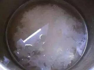 3,糯米洗淨,同銀耳一起放入鍋中;加入適量冷水,大火煮開,中火慢煮20分鐘。