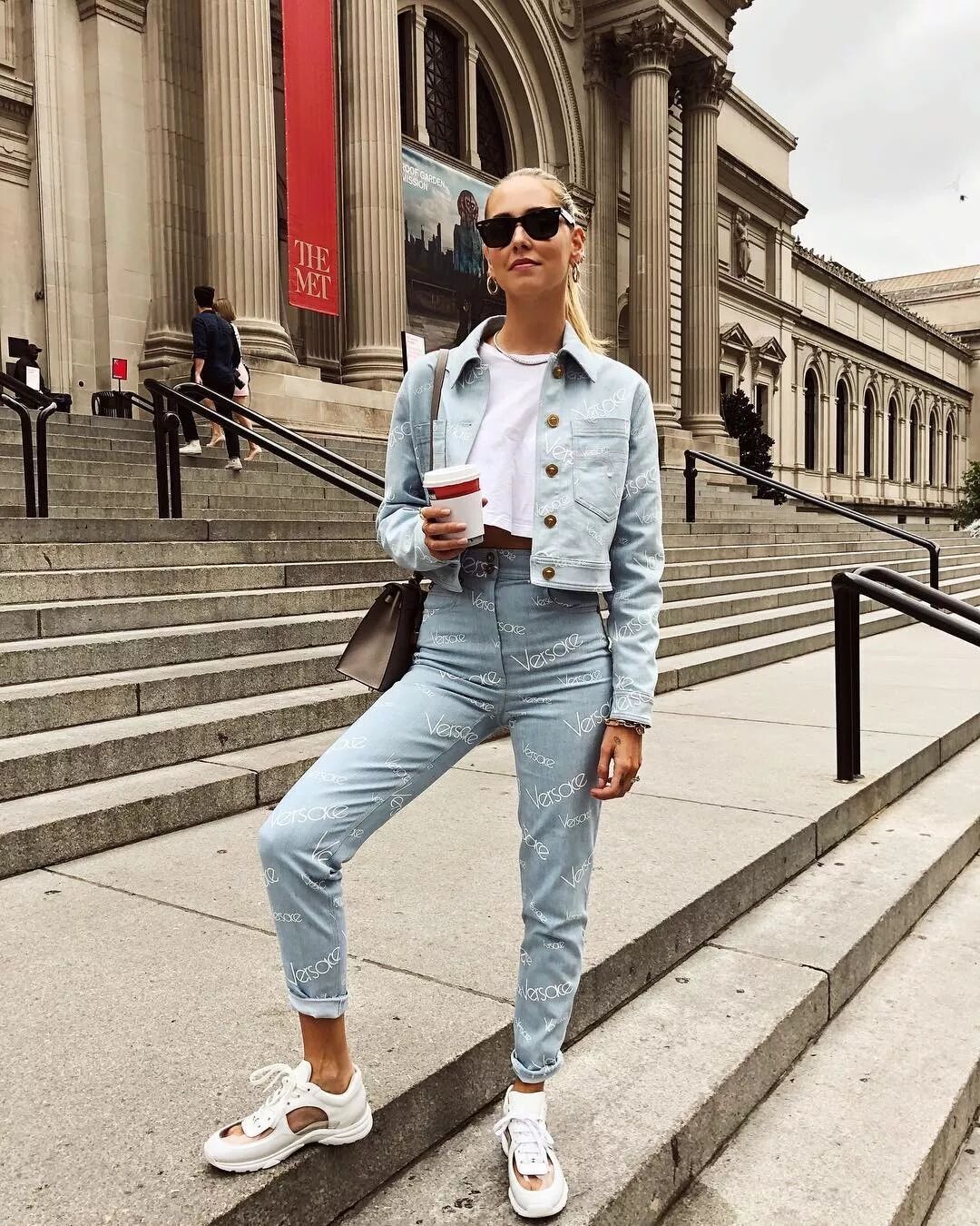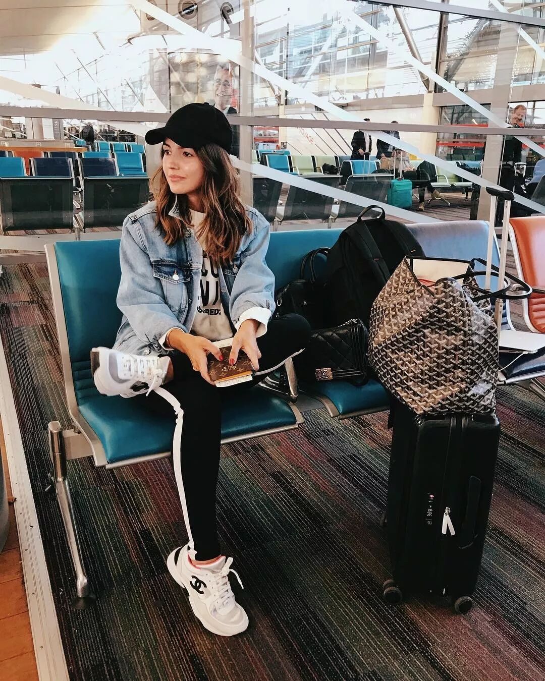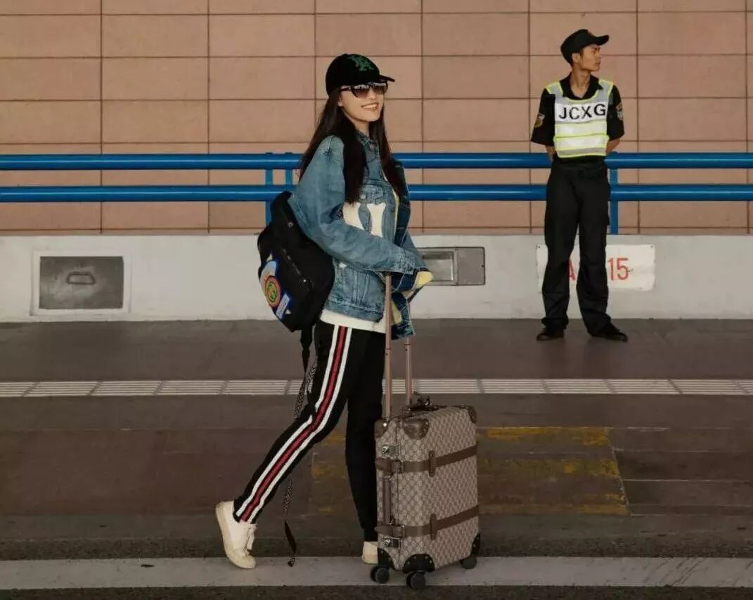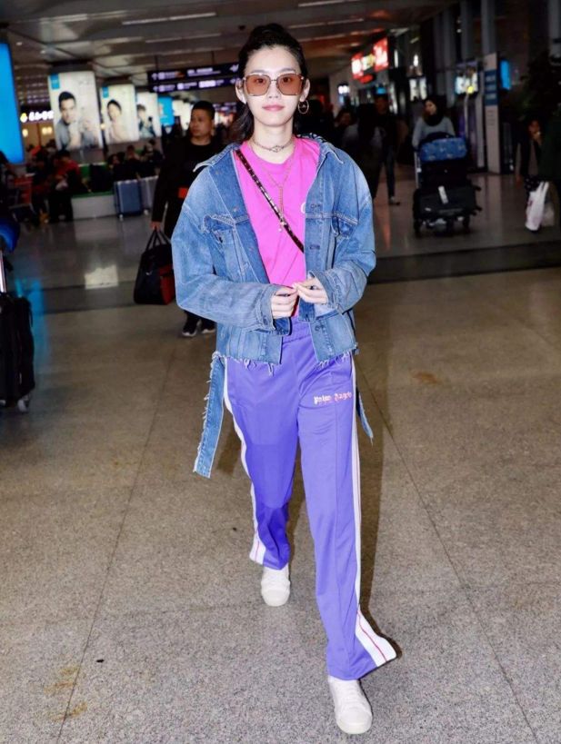 運動褲今年依舊高熱度,與牛仔混搭也是時髦值爆表,這樣的組合舒適度自然不用說,范范基本上每次坐飛機都是這一套,而且還很有減齡效果,寫滿了活力和年輕感,看起來更IN更時髦。