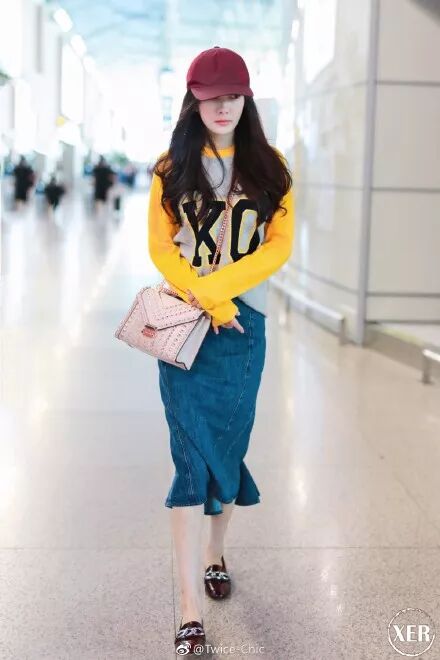 倪妮在機場也這樣穿啦~相比用力太猛的機場造型,我反而喜歡這種比較實際的。