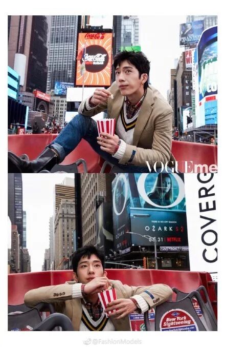 井柏然在紐約街頭給Vogue拍攝街拍,雅痞風十足。不過我的重點在——紐約街頭已經冷到要穿這麼多衣服了?
