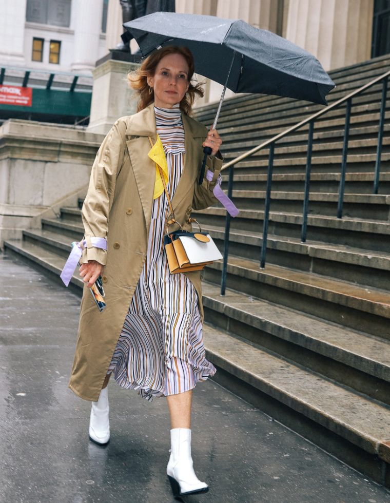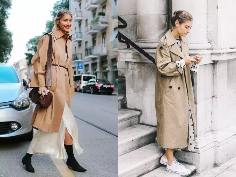 優雅的裙子是風衣的最佳拍檔,不管是連衣裙還是半身裙,都能演繹出通勤、知性、柔美、休閒等種種多元的時尚風格。