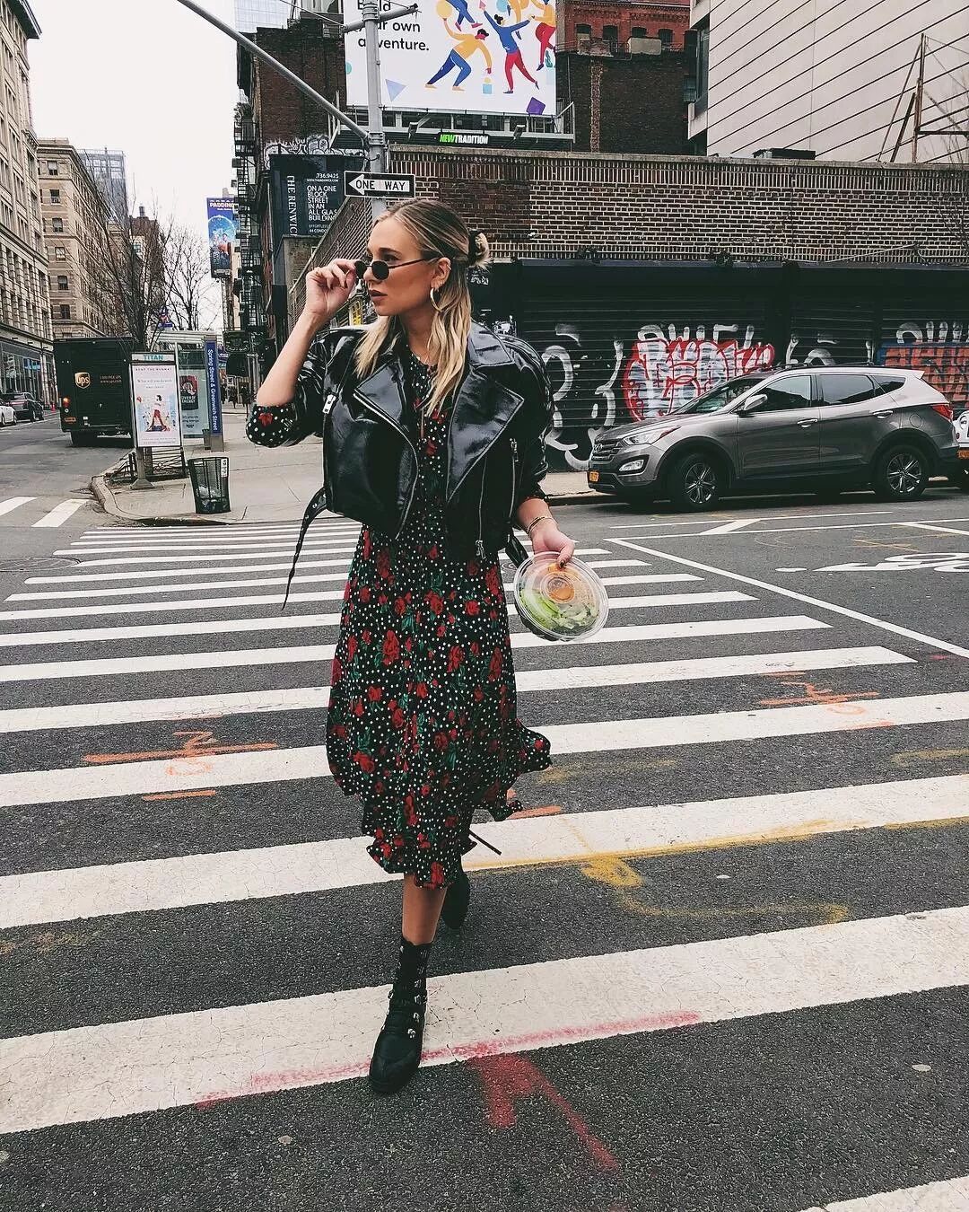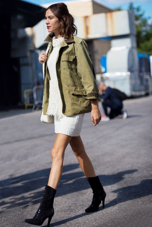 連衣裙或半裙搭配夾克都是ok的,街頭感中帶點氣質,既有小女人的味道,也能顯得特別大氣。