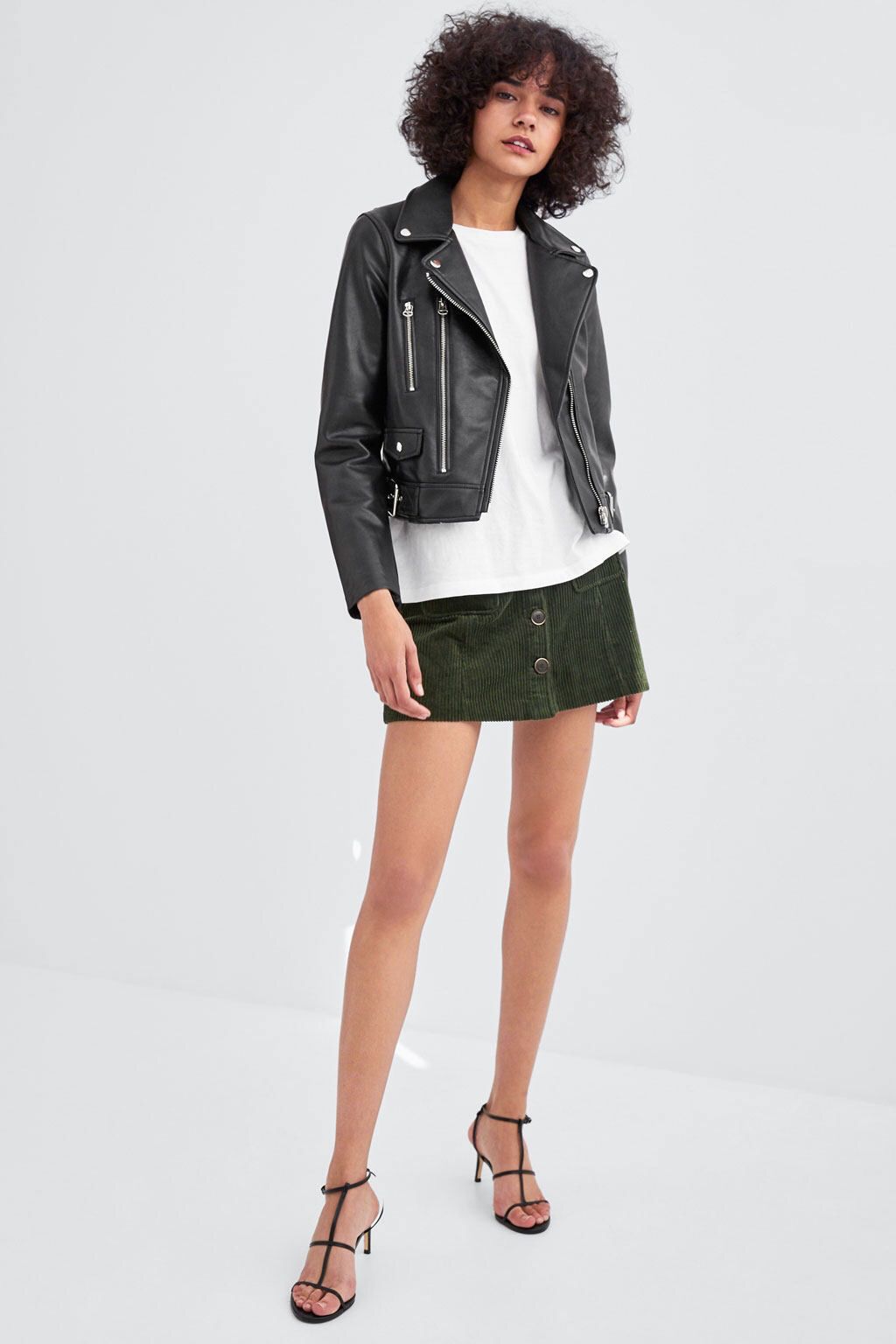 想穿修身的皮夾克,可以選擇短款。內搭白色T恤、小高領等等可以跨季的內搭都能時髦又不顯得太單薄。
