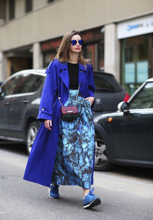 這款風衣看起來帥氣又瀟灑,風衣自身的版型帥氣十足,寶藍色又有了點知性,與女人味十足的半裙搭配,時髦大氣。