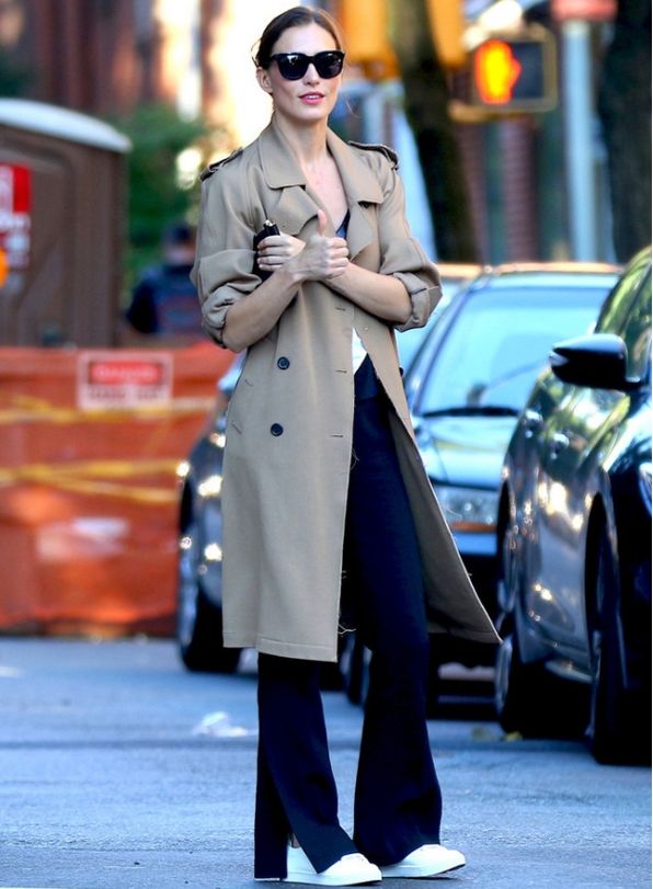 風衣的瀟灑帥氣與闊腿褲的隨性舒適可以說是絕配,這兩個氣場超強的單品搭配在一起,看起來氣場加倍,超級拉風。