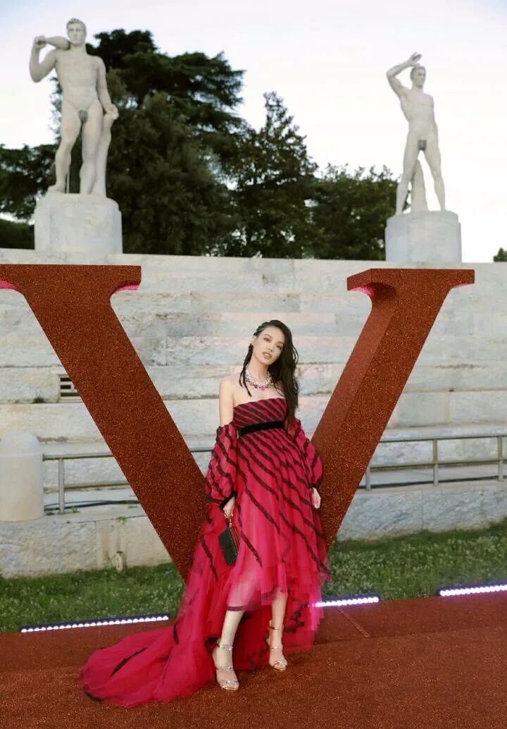 大紅色的裙子都敢穿也是很有勇氣了,抹胸的設計非常的性感了,整個人看起來也是非常的大氣了,很有氣質的感覺