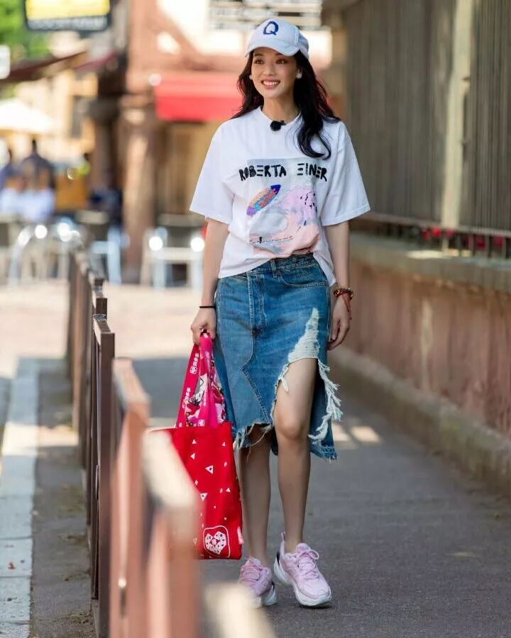 這一身搭配是比較休閒的,白色的短袖搭配一條比較誇張的破洞裙,本來有點單調的搭配一下子就明亮了起來了,很有特色