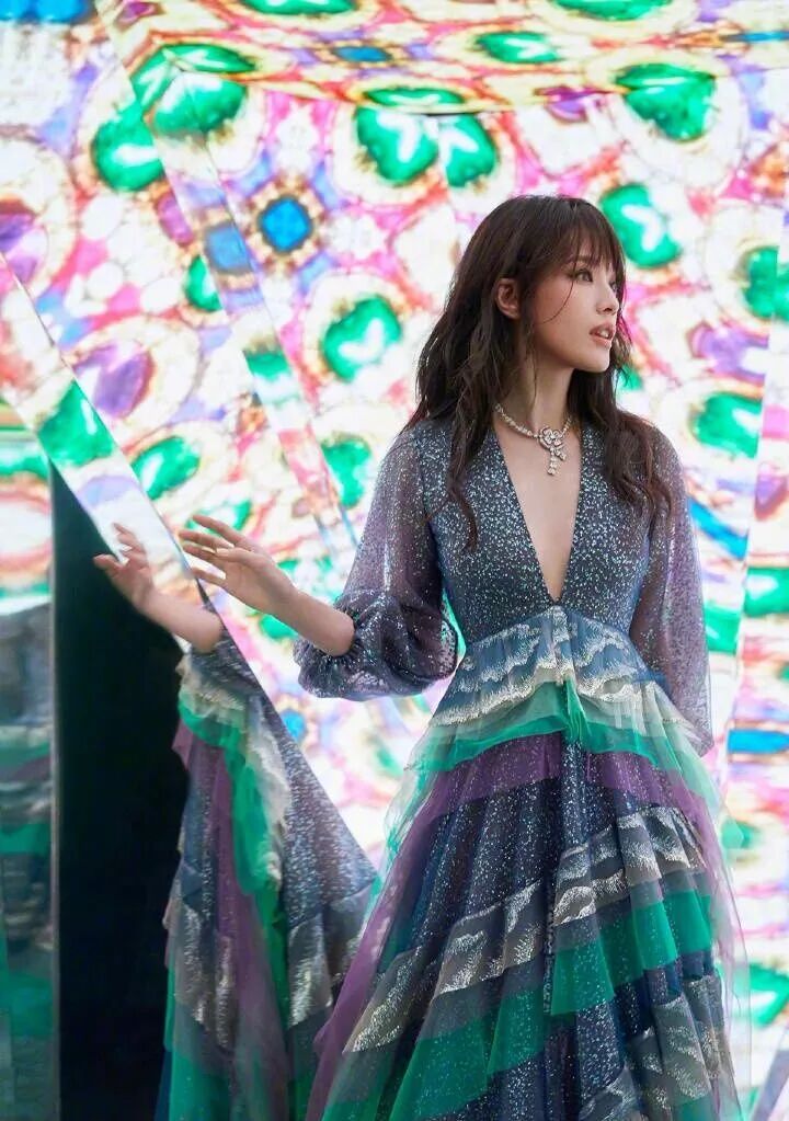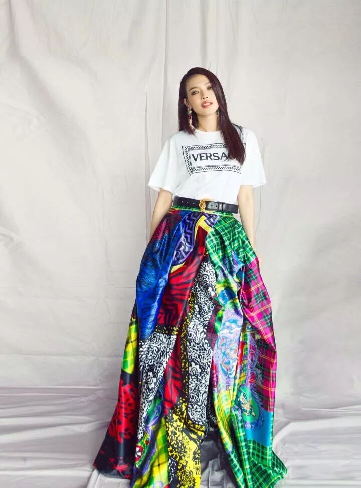 舒淇就適合穿裙子,本來像塑膠的衣服穿出了「七彩霞衣」的感覺!