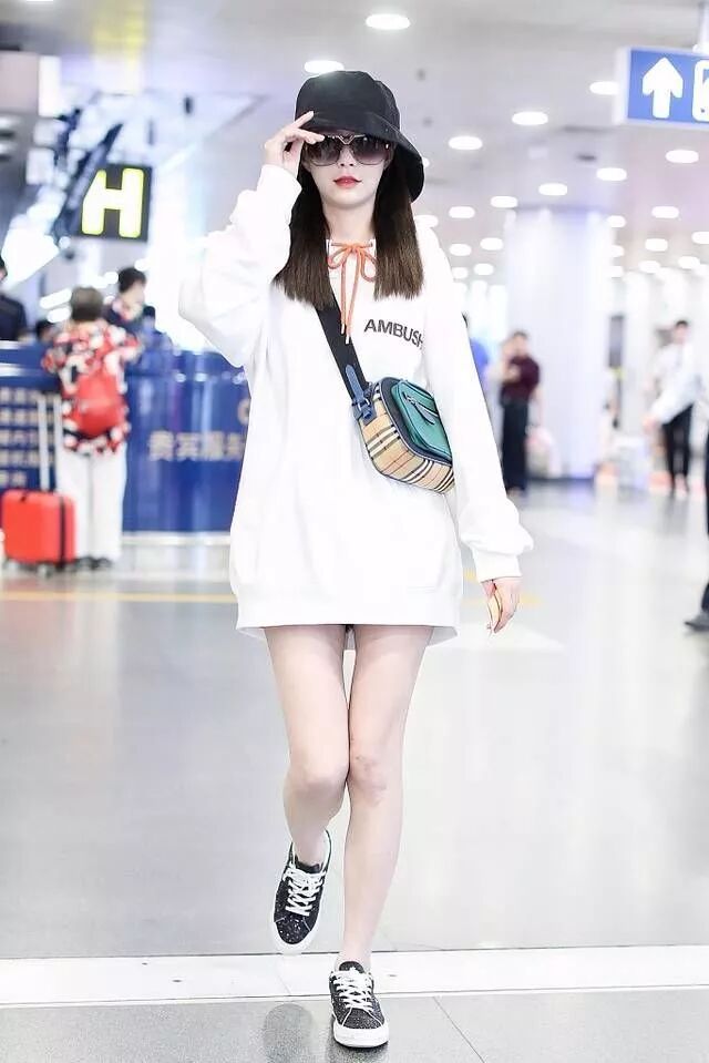 明星也是這樣,看沈夢辰的這張機場照可以發現,她的皮膚是非常的黑的,不知道是不是沒有打好光,白色的衛衣穿著還是挺有個性的