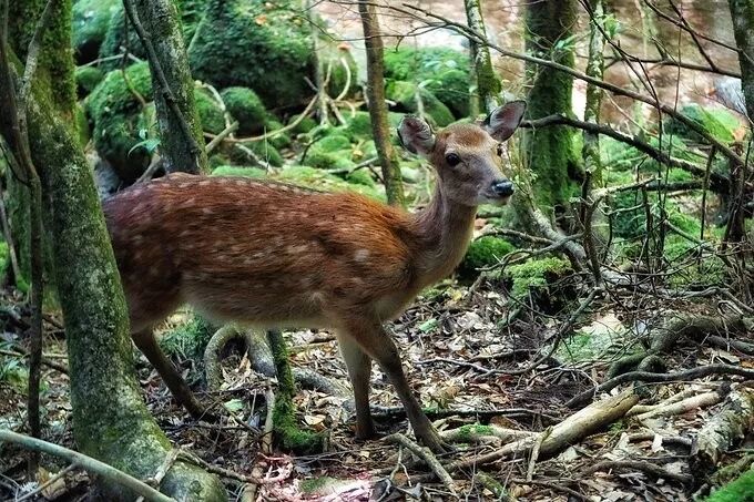 在日本大概再也不會找到這麼原始的地方了。來到這里你就會發現,沒有條條大路,也沒有太多人們留下的痕跡,眼前所見的是苔蘚、看不見天日的高聳樹木,以及涓涓細流,更有可愛的鹿與猴子作伴。