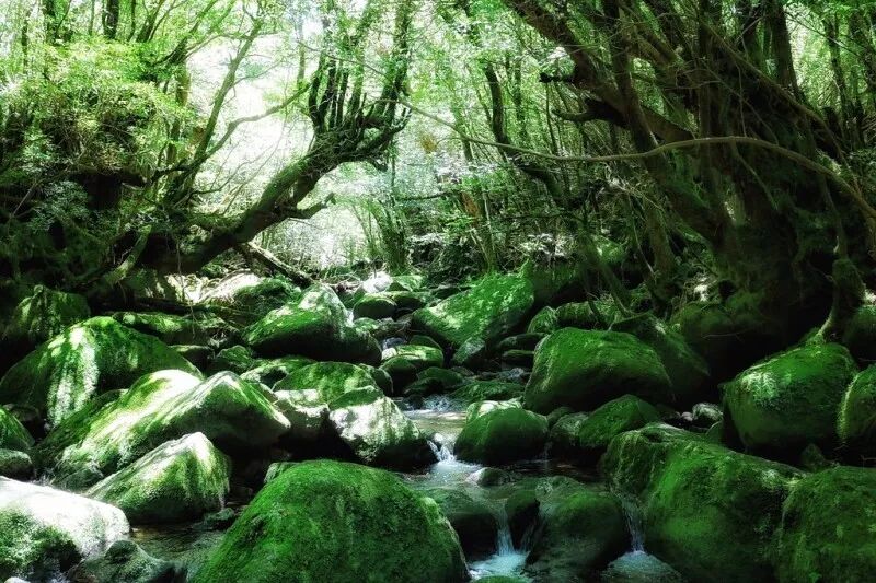 經過歲月洗禮的古樹、潺潺流淌的溪水,這里獨一無二的奇幻氛圍更是吸引著全世界的人們。如果一定要用語言來形容它的樣子,也只能說屋久島用完了全世界的綠。