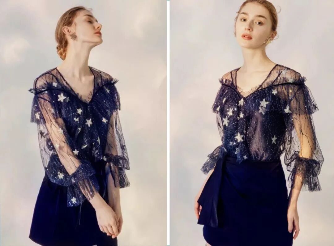 這銀星寶藍套裝我買了有段時間了,一直找不到機會穿。別看看著暗暗的,上面的亮片很璀璨,穿起來還挺華麗呢。