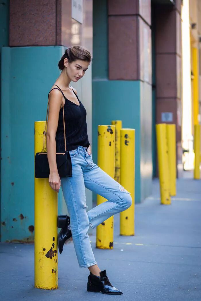 牛仔褲 + 吊帶上衣 會比 牛仔褲 + T恤要更有時尚感,理由很簡單,越常規的搭配越不夠時尚,越爛大街的搭配越不夠時尚。