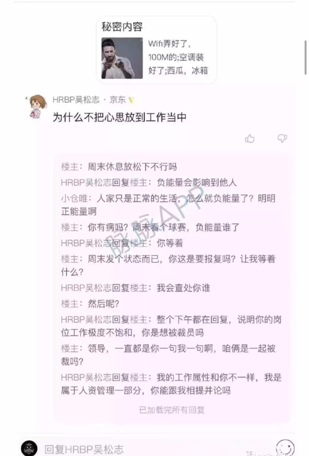 前陣子JD某HR也是活生生的例子,員工在社交平台發布看世界盃的消息,就被HR給懟了,還揚言要員工「等著」,結果這位HR被網友批得體無完膚。