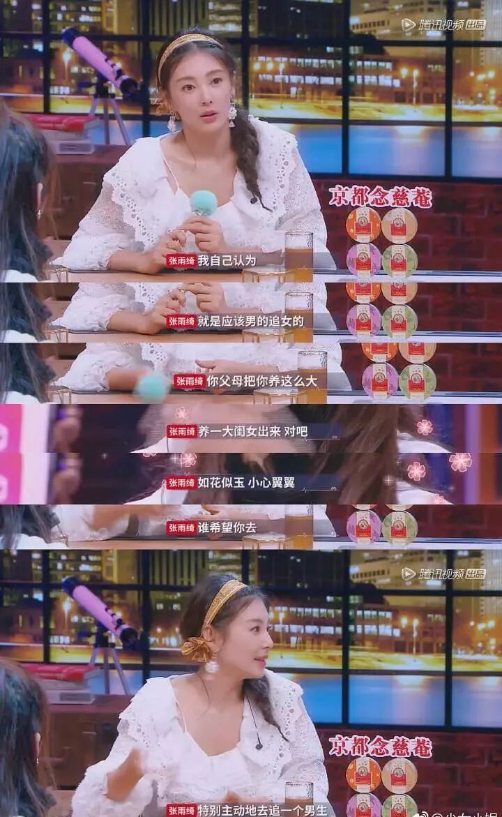 雖然現在已經是8012年,是男女自由的戀愛,女生和男生一樣,都可以大方地追求愛情。但是沒想到張雨綺這樣一個,看起來敢愛敢恨的女明星,她卻說在現實生活中,女生還是選擇 被動 一些比較好。