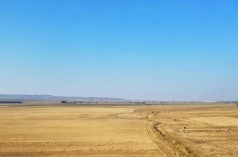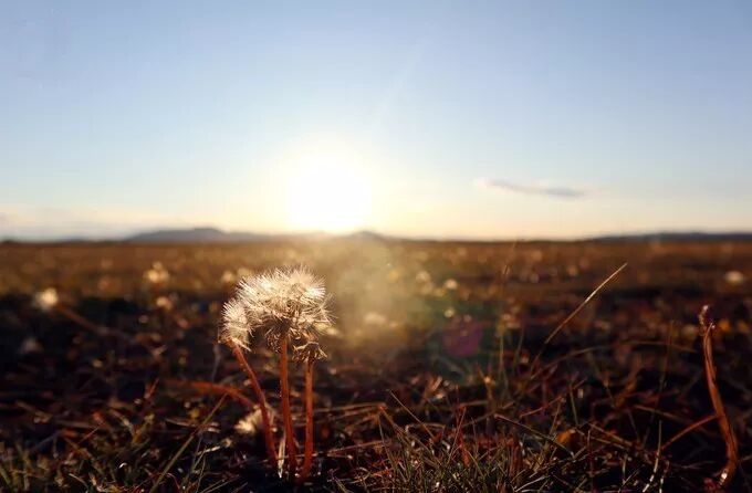 俄蒙邊境,土地再一次由起伏變成平坦,天上的雲層一點一點被夕陽映的火紅。