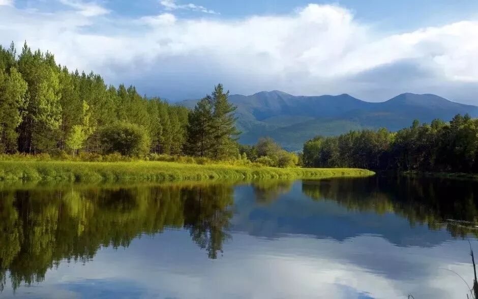 一路向北,空氣變得濕潤,山巒草地也多了起來,近在一旁的色楞格河緊緊相隨,天空飄起小雨,滿眼都是清新的綠色。