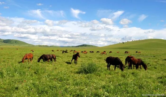 這里水草肥美,廣袤原野不見一寸荒地的,茂密森林安靜清新,眺望遠方有群山峻嶺,還有雄鹿在山頂上奔跑。