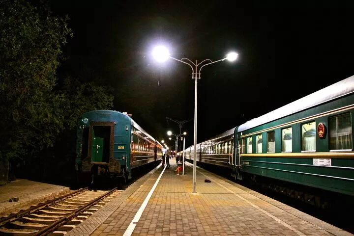 大約到了夜里,火車漸漸在邊境站二連浩特停了下來,進行一系列驗收護照,辦理過境手續的事宜,空閒期間,漫步於站台,聽著耳畔響起了《歌唱祖國》,滿滿的革命強調,像穿越到了解放前的舊時代。