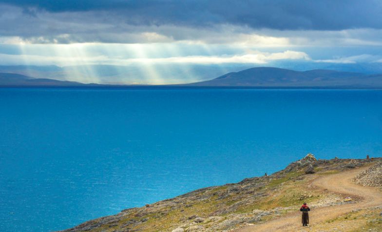 看著羊卓雍措嵌在荒涼群山中的身影觸動心里最柔軟的地方,這一片最藍的天空,離鷹鷲最近,離煩愁最遠。