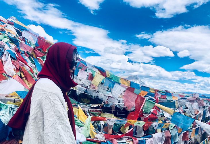在略微缺氧堅持登上埡口,微微喘氣,看著風中飄揚的經幡。眺望布達拉宮,不由自主合十掌心,默默祈禱… …