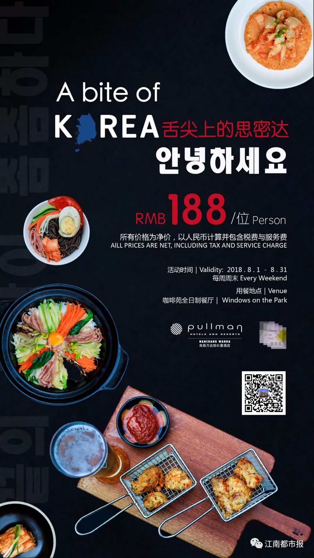 8月韓國美食節開啟,南昌萬達鉑爾曼酒店咖啡苑推出周末韓國美食節,在原有的自助餐基礎上增加多種韓式料理,在每周五至周日呈現更多精彩!