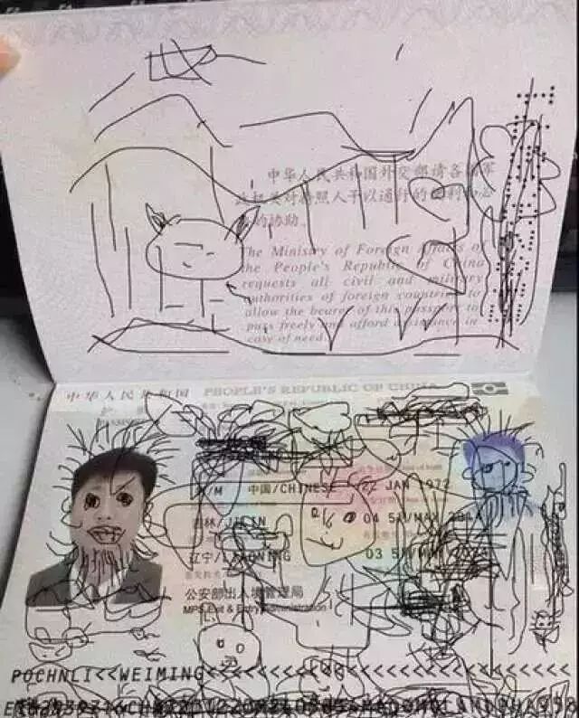 瀋陽的一對父子前往韓國釜山旅行,誰知在酒店下榻後,熊孩子竟然趁著爸爸洗澡的時候,拿出筆來在護照上進行「藝術創作」——結果這對父子,最終不能與旅行團隊一起回國……