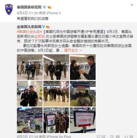 泰國國家移民局也回應稱「希望看到我們的誠意。」