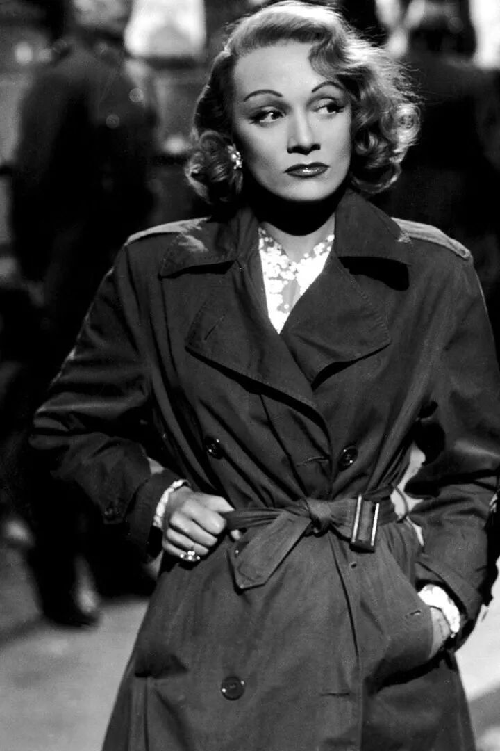 把風衣穿得很酷的,還要數中性風先驅瑪琳·黛德麗。這是她在《柏林艷史》里的模樣: