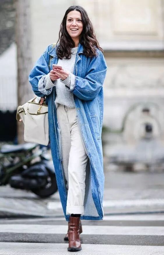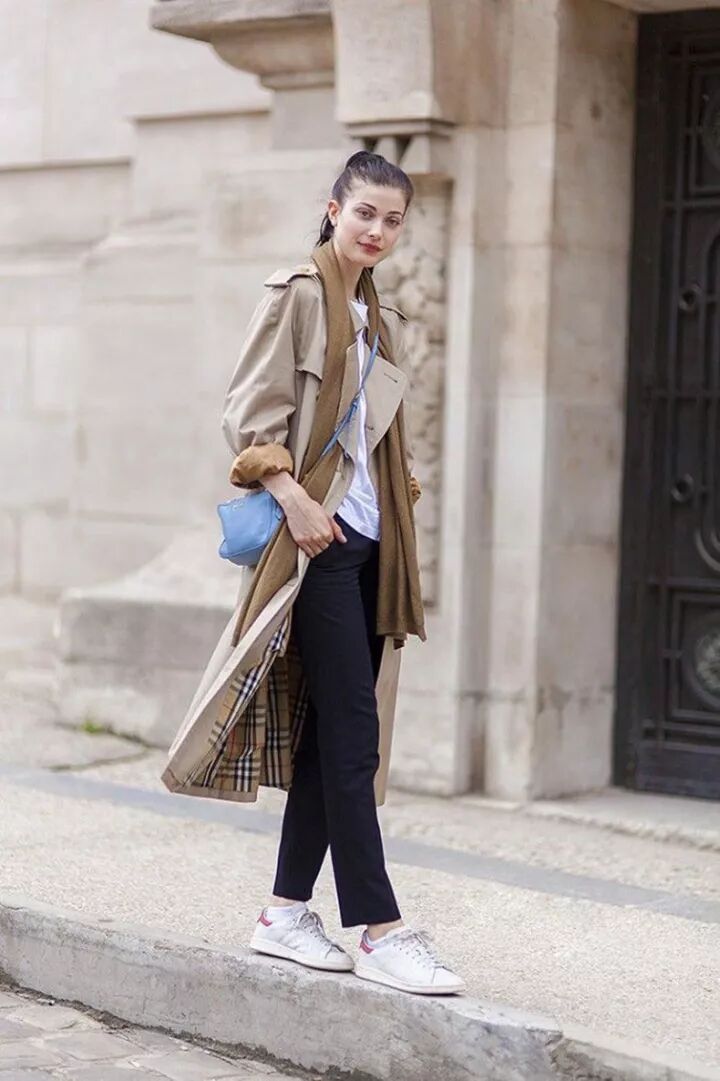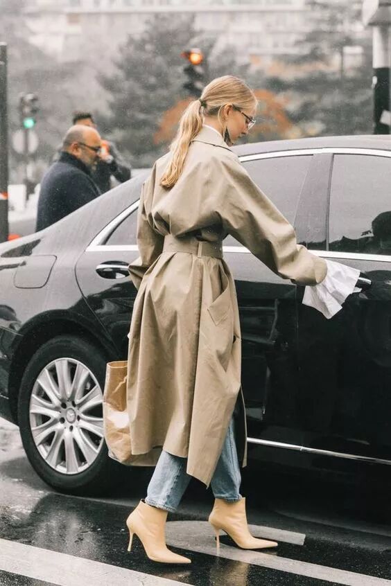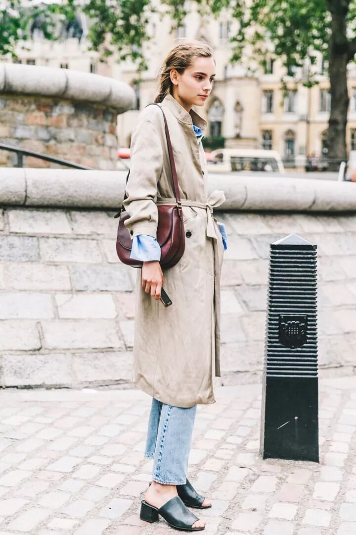 最常見好學的穿法就是風衣搭配牛仔褲。劃重點,牛仔褲最好是 mom jeans,也可以是寬鬆的直筒褲。