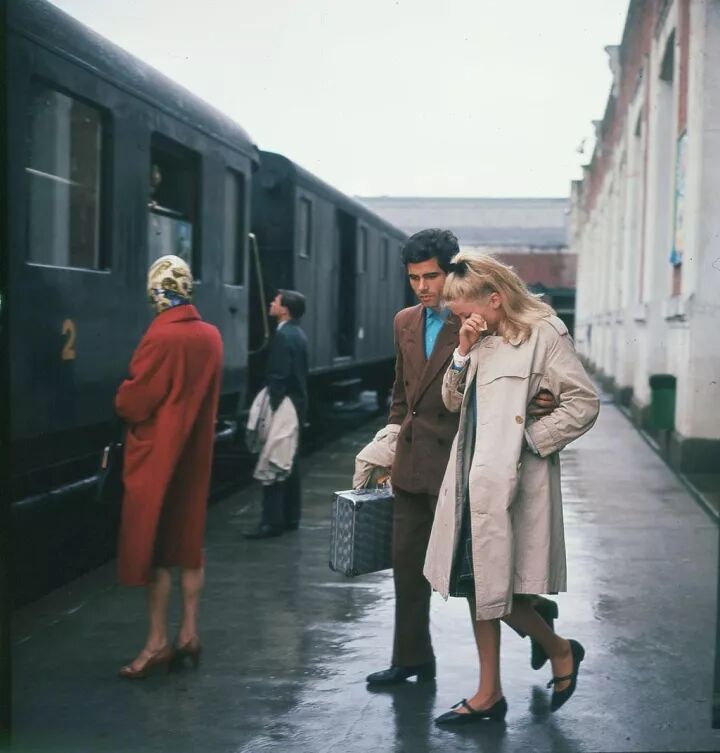 在《瑟堡的雨傘》中,法國女演員凱瑟琳·德納芙飾演了被迫戀人分別的少女,穿著風衣,像是把心事也穿在了身上: