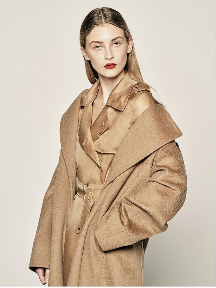 大衣專家 Max Mara,還是使用自家標誌性的駝色來製作風衣,而且偏愛疊穿: