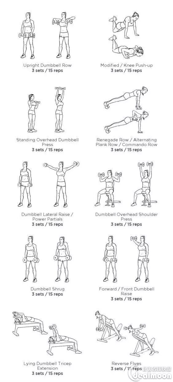 free weights 很適合女生!選一個合適自己的weight 就可以開始訓練啦!詳細圖解如下: