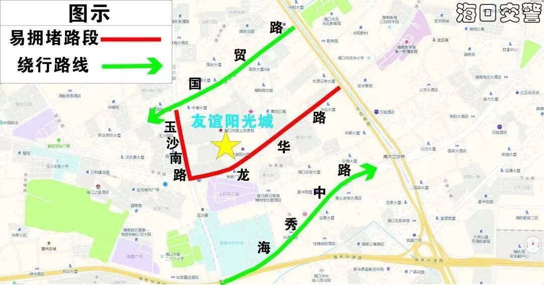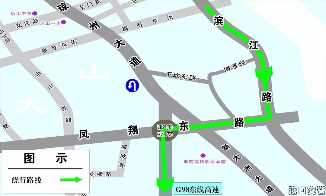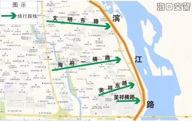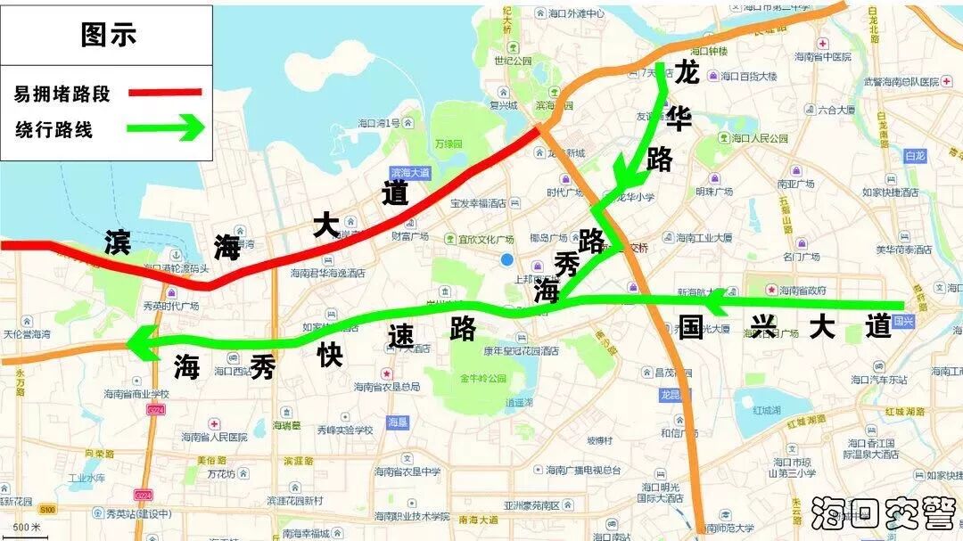 (三)國興大道→瓊州大橋進出城交通壓力集中,建議視情況擇道繞行: