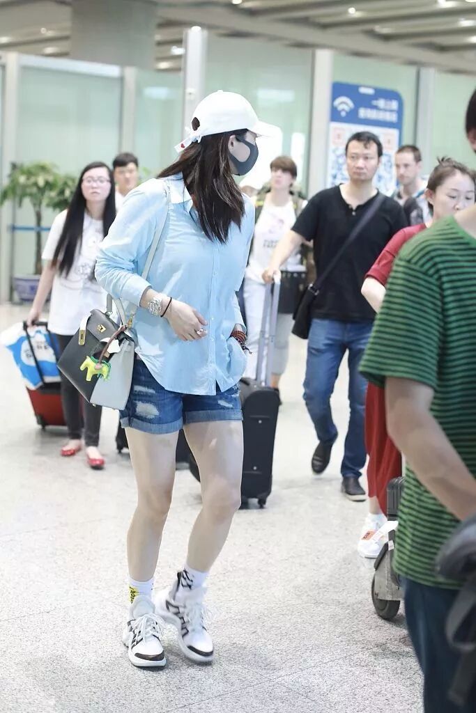蔣欣的胖還真不是亂說的,看那她這粗壯的腿就知道了,穿藍色的襯衫搭短褲,還真是挺清新隨性的,只不過缺點暴露的很明晰呢。