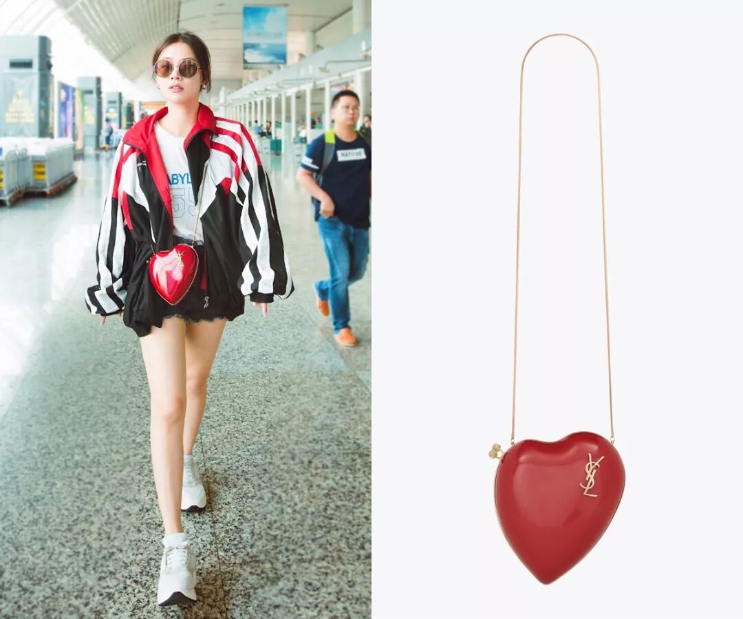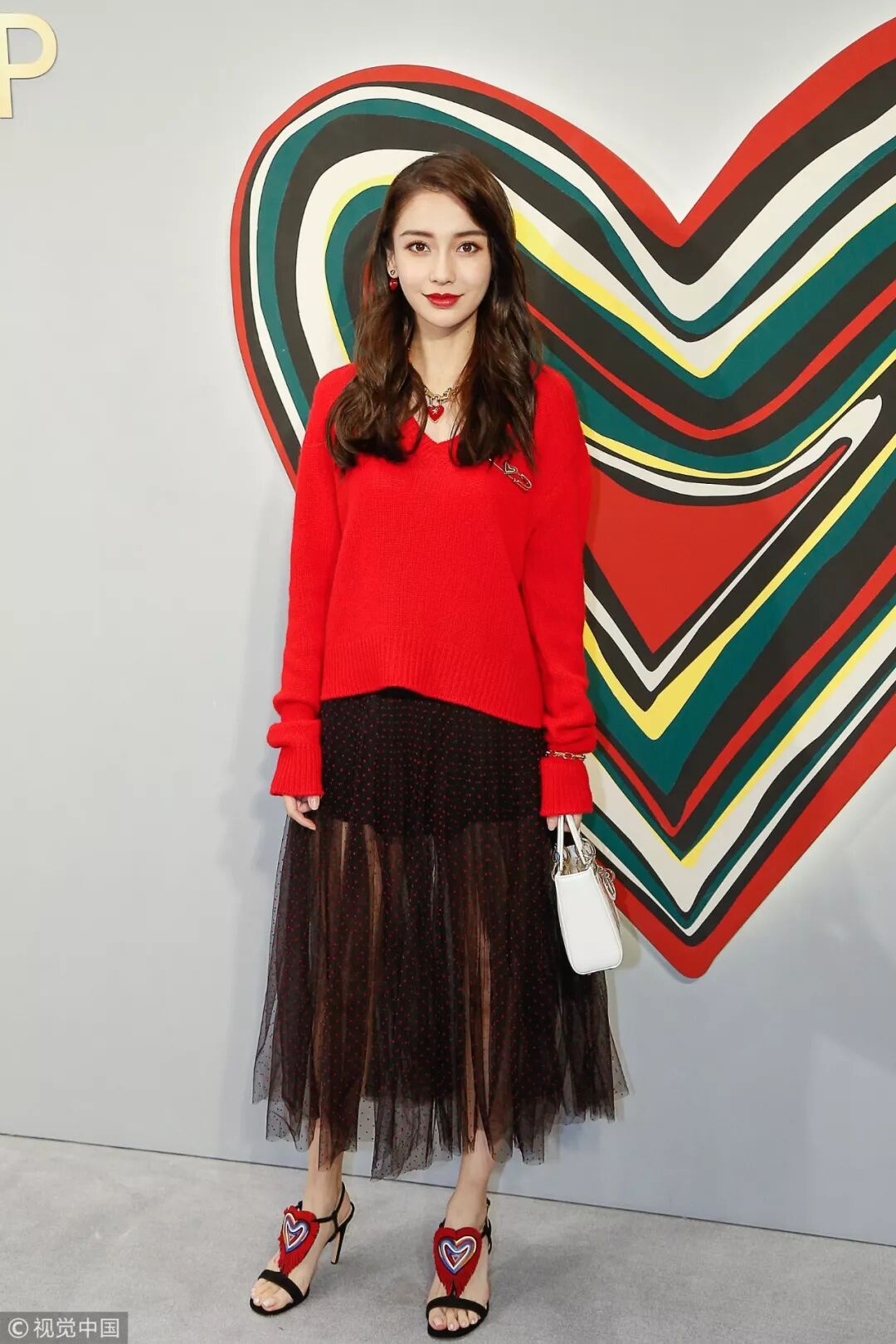 baby選擇了Dior的桃心裝飾的高跟鞋,與整體的紅黑造型完美契合,也與桃心形狀的耳墜和項鏈遙相呼應。