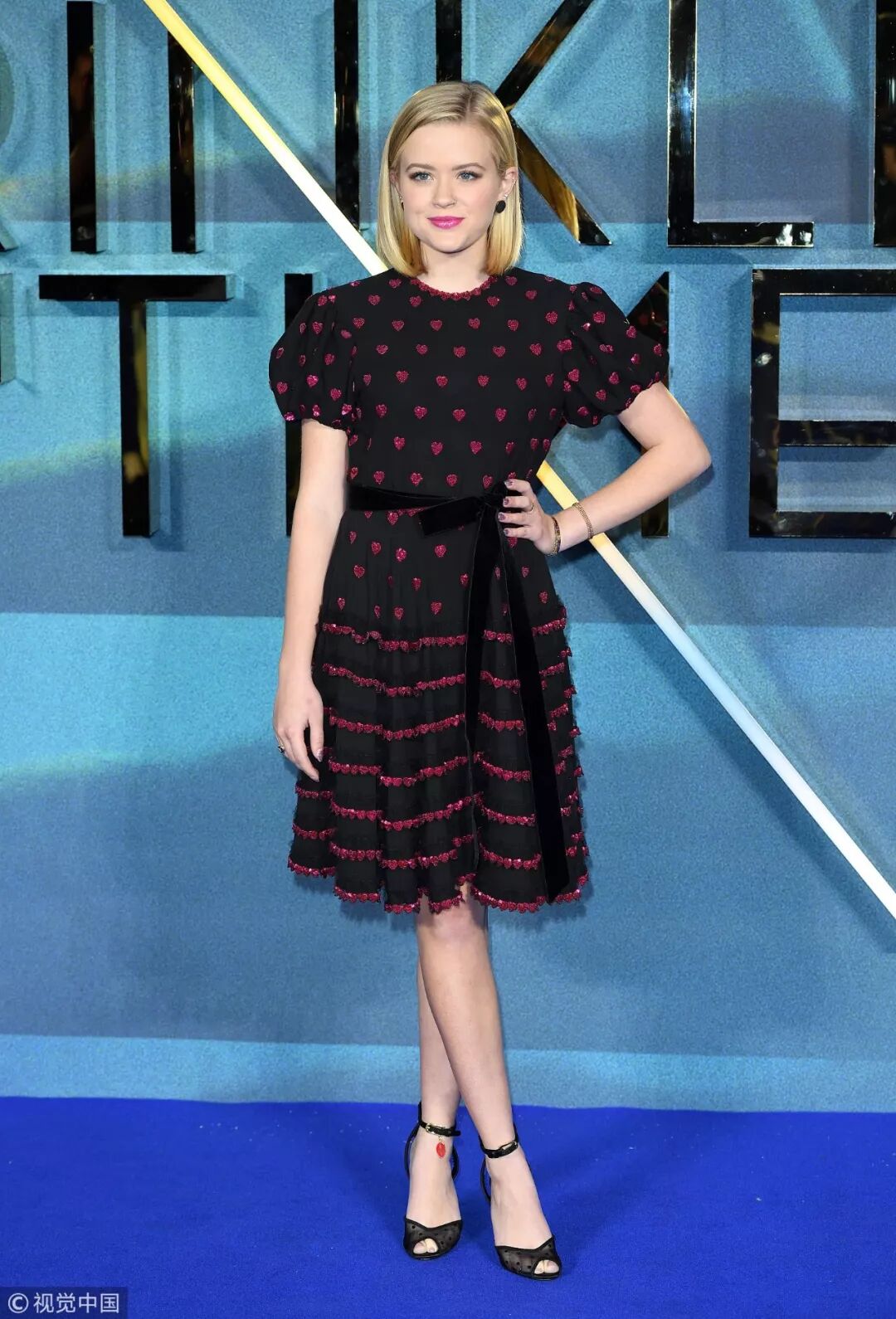 Ava Phillippe同樣選擇了黑底紅桃心連衣裙,bling bling的桃心貼片帶來閃亮活潑感,有序排列的桃心在裙擺上被連成一線,趣味又甜美。