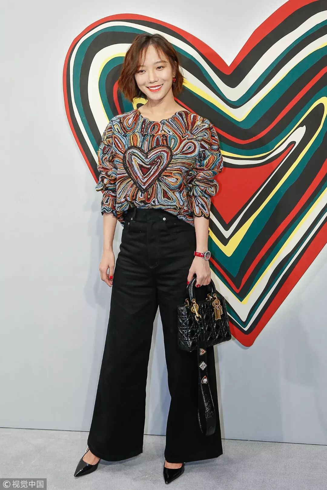 王珞丹這身造型搭配的優雅貴氣,幾何圖案匯集於胸前的桃心,下搭黑色高腰闊腿褲和J’Adior黑色高跟鞋,既有大女人的知性感又有小女人的嬌羞感。
