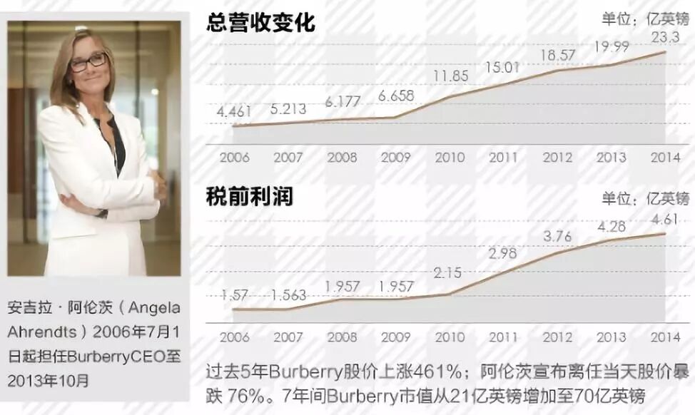 安吉拉·阿倫茨的改革大獲成功,Burberry的業績迎來大漲,安吉拉·阿倫茨也借此名聲大噪,吸引了蘋果總裁庫克的注意。