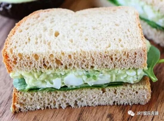 牛油果雞蛋三明治 : 將牛油果肉和熟雞蛋攪拌好,配上生菜葉就大功告成。