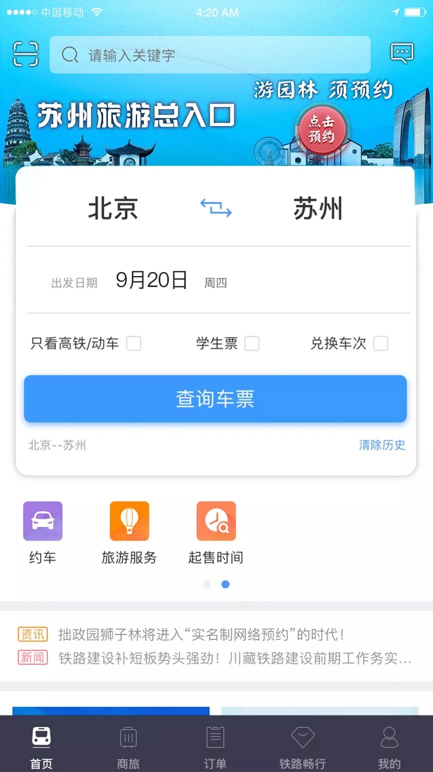 打開鐵路12306的APP,即可見定制化蘇州旅遊專屬內容,一鍵關注「蘇州旅遊總入口」,便可獲得蘇州旅遊景點、住宿、餐飲、活動等全方位信息。