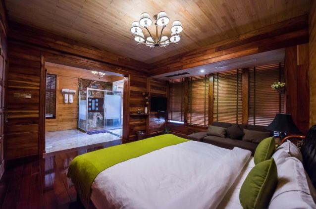 裝修成木屋的主題,給人一種原始的生態感與清涼感;