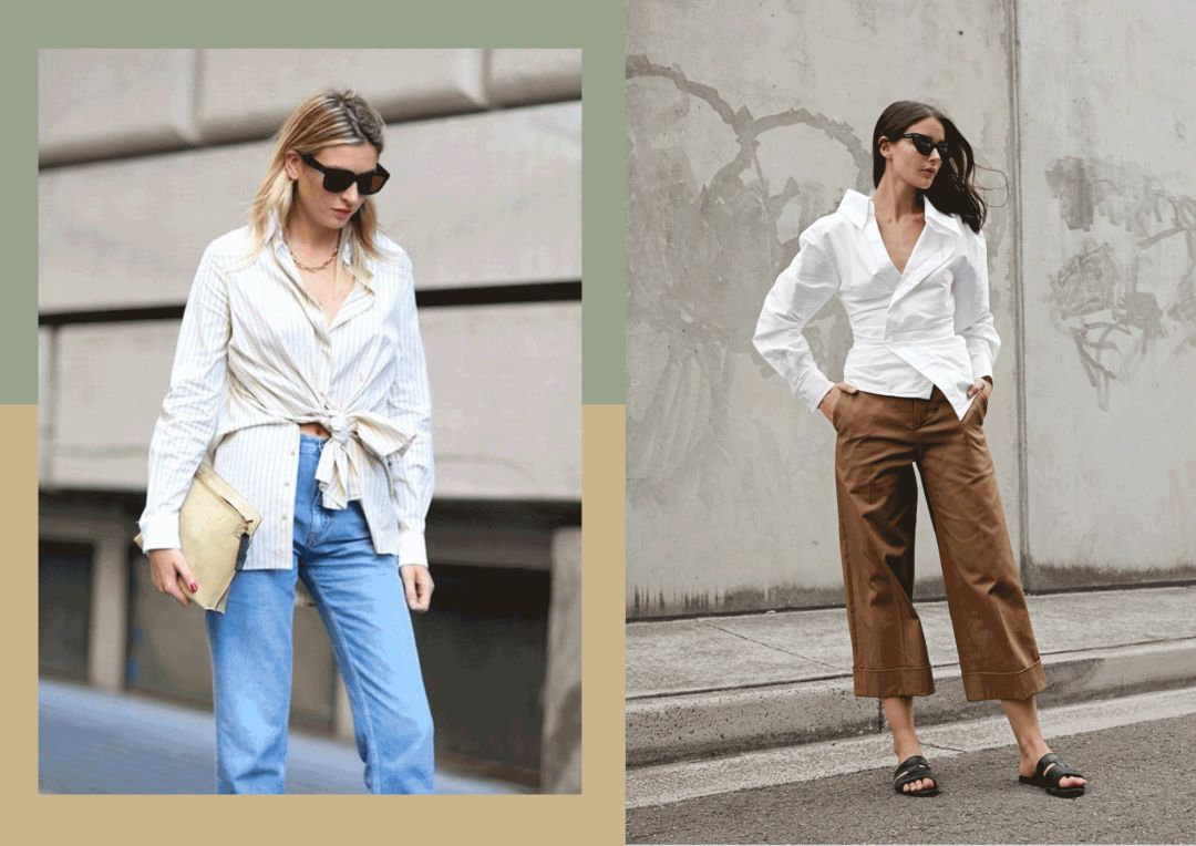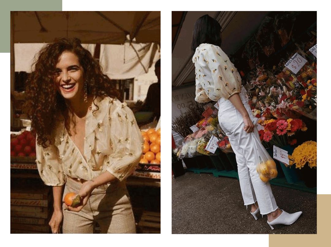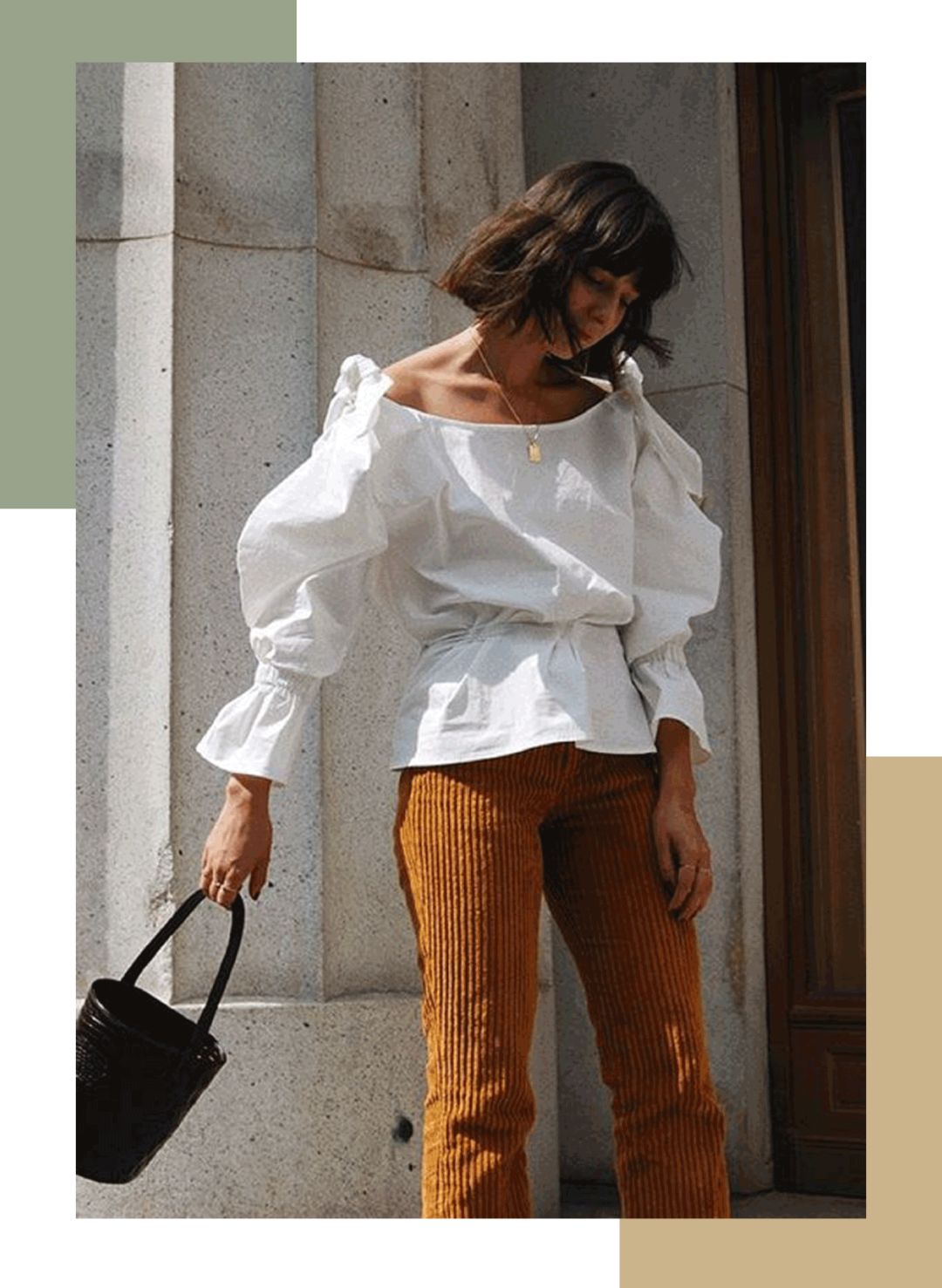 羊腿袖的襯衫也可以考慮,對於這個季節來說實穿性更高一些,可以搭配長褲,這一款肩膀上的系帶蝴蝶結增加了少女感。