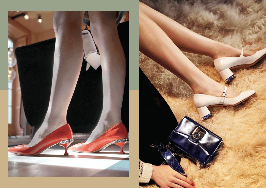鞋子也是年輕感的設計,簡潔款的高跟鞋日常也可以穿,小範圍的鑲鑽很別致,適合搭配仙仙的小裙子。