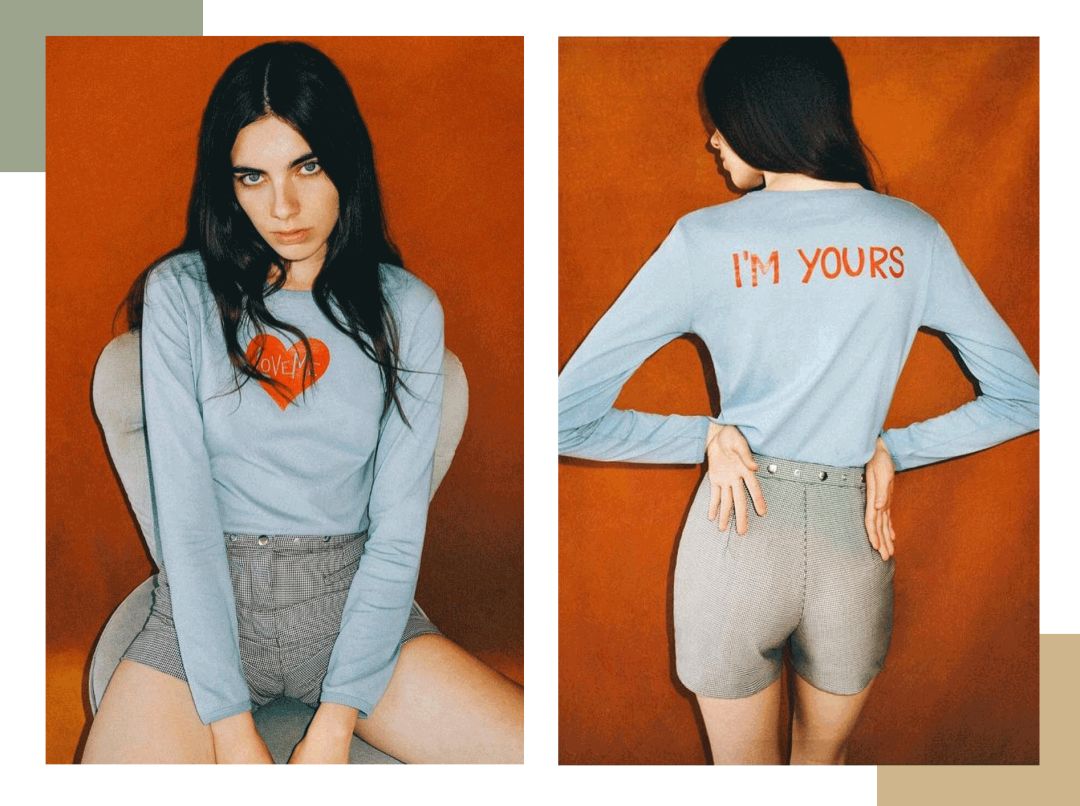 我比較喜歡的一點是,品牌的少女感不僅可以仙,還可以很隨性,就像這件印花的長袖Tee,非常實穿,還很有趣。