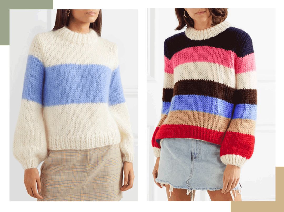 L: Ganni Julliard 條紋馬海毛羊毛混紡毛衣 $511$408.8