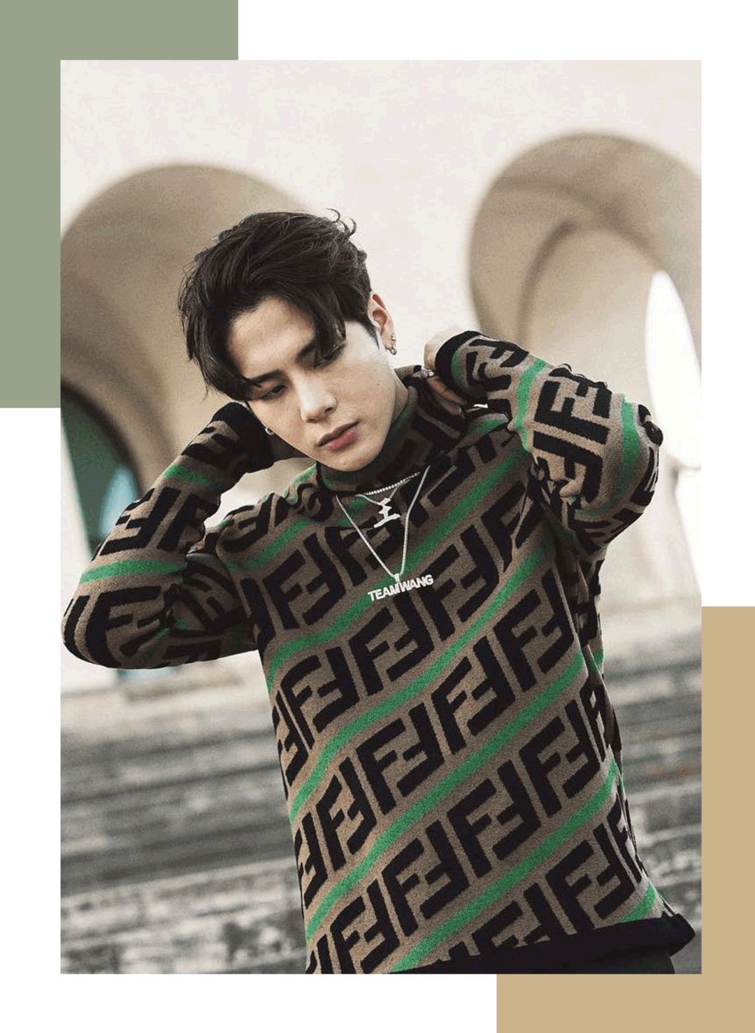 王嘉爾身上這件毛衣,其實女生可以當oversize穿,初秋的時候正好配一條短裙,玩玩下身失蹤。