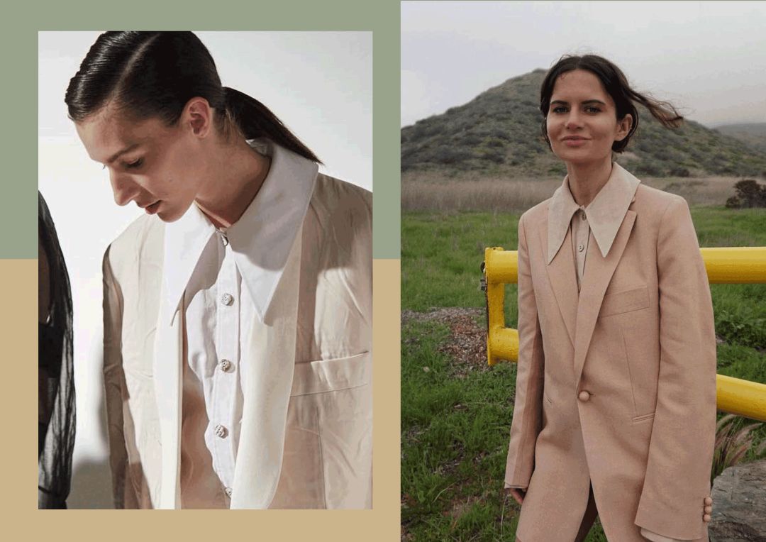 他們家還有很多寬大廓形的西裝,最新系列用了鵝黃、櫻花粉,淡淡的顏色簡單的款式總能給人明朗的感覺。