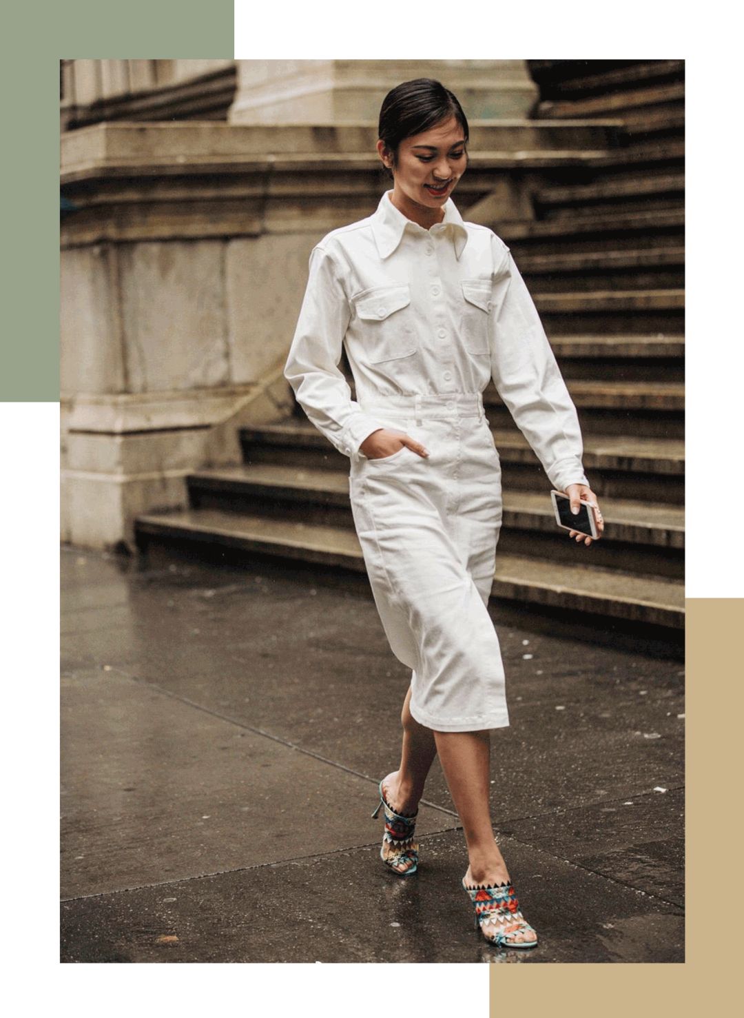 鐘小姐本人就特別喜歡穿,和一些休閒的單品如牛仔褲啊、運動鞋搭配在一起,反倒清爽。