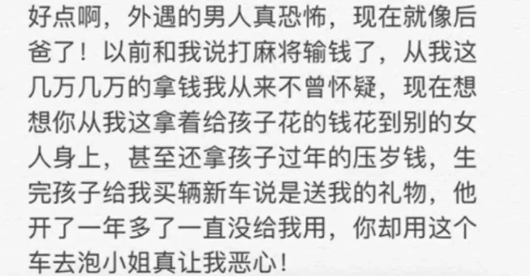 出軌的男人,是沒有人性的。用老婆的錢去養小三,還無恥地花孩子的壓歲錢。